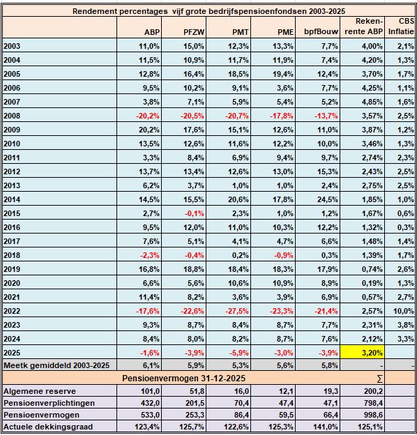 6. Rendement APB, PFZW, PMT, PME, bpfBouw 2003-2025K3